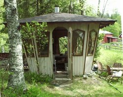 Herkimpinä hetkinä istuuduin huvimajan vieresssä olevaan kielojen täyttämään rinteeseen kuuntelemaan lintujen laulua ja puron solinaa. Ja otinpa siinä vielä lasillisen Captain Morgan rommia tuumien tätä ihmisen elon kurjuutta.